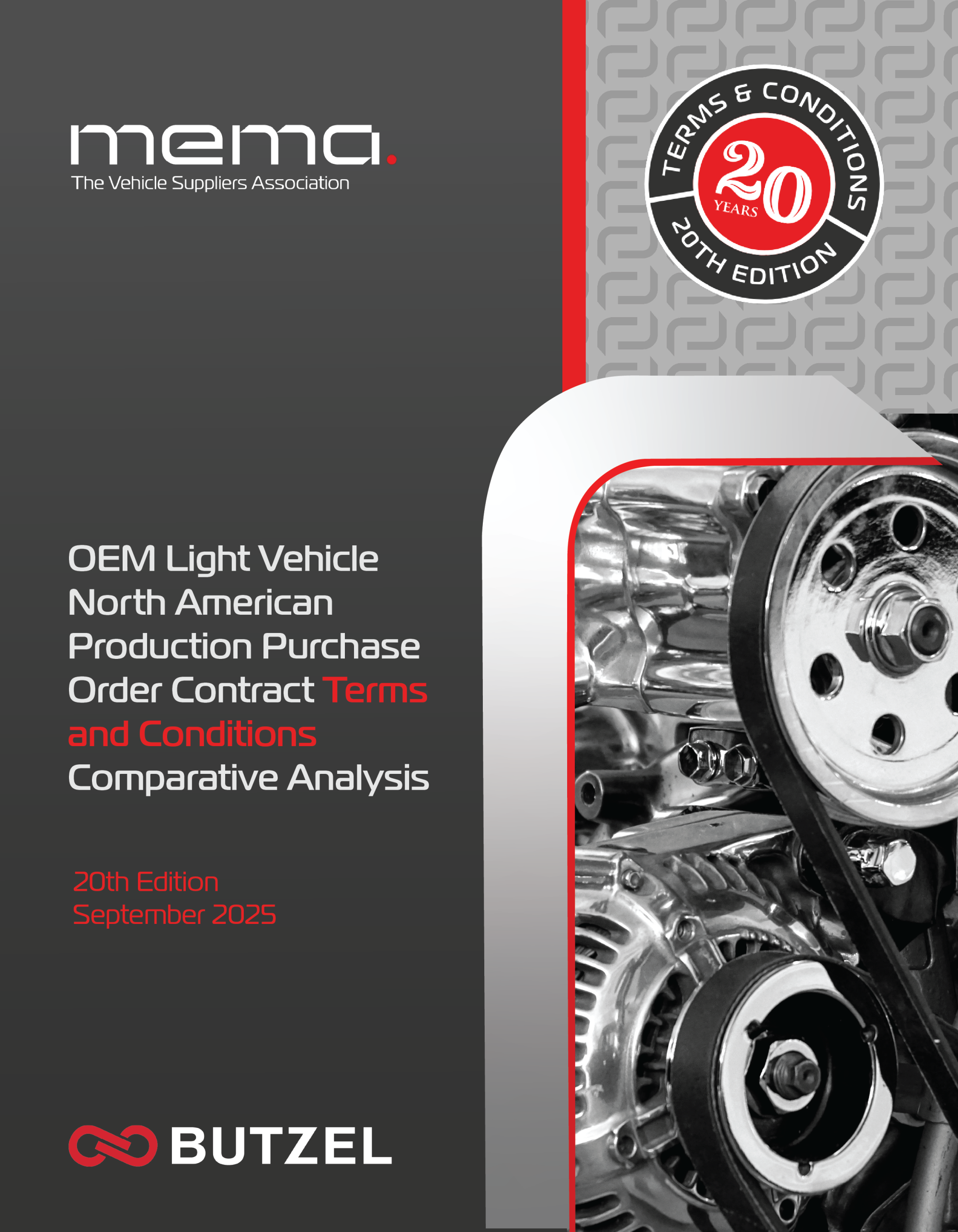 The new 20th Edition, 2025 MEMA Original Equipment Suppliers, OEM Light Vehicle North American Production Purchase Order Contract Terms and Conditions Comparative Analysis, issued September 18, 2025, is available for purchase. Book orders can be placed directly through MEMA or please contact your Butzel attorney.